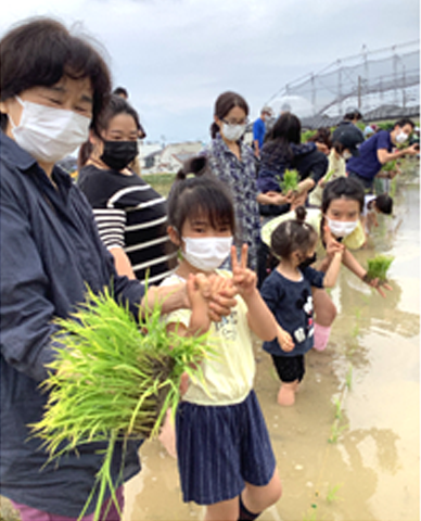 田植え、稲刈り体験会を行っています。生産者との交流を通じて農業やお米の大切さにふれあう機会です。