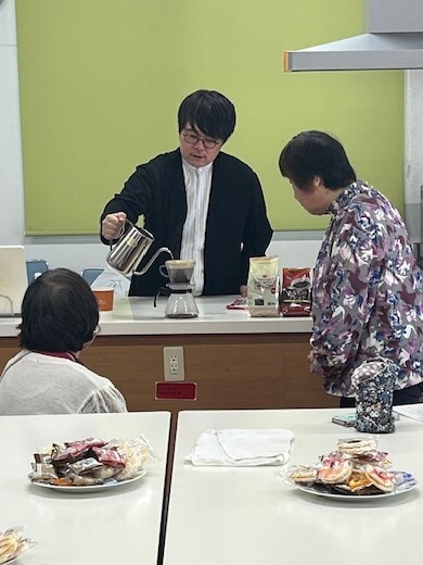 前半は、メーカーのワルツさんを講師に迎えて「おいしいコーヒーの淹れ方」を学習。